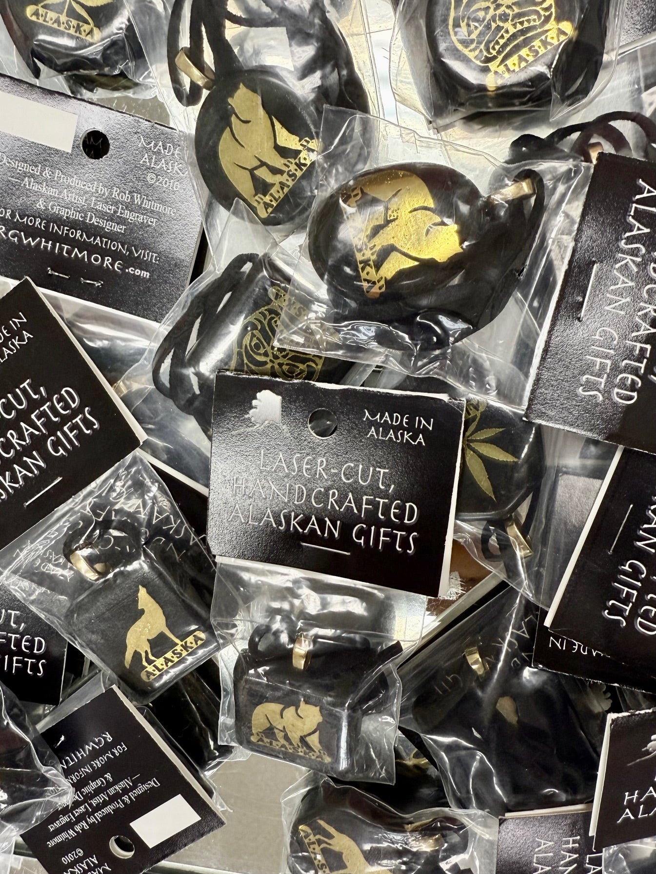 Beautiful Black & Gold Laser Engraved Pendants on Simple Cord by Artist Rob Whitmore.