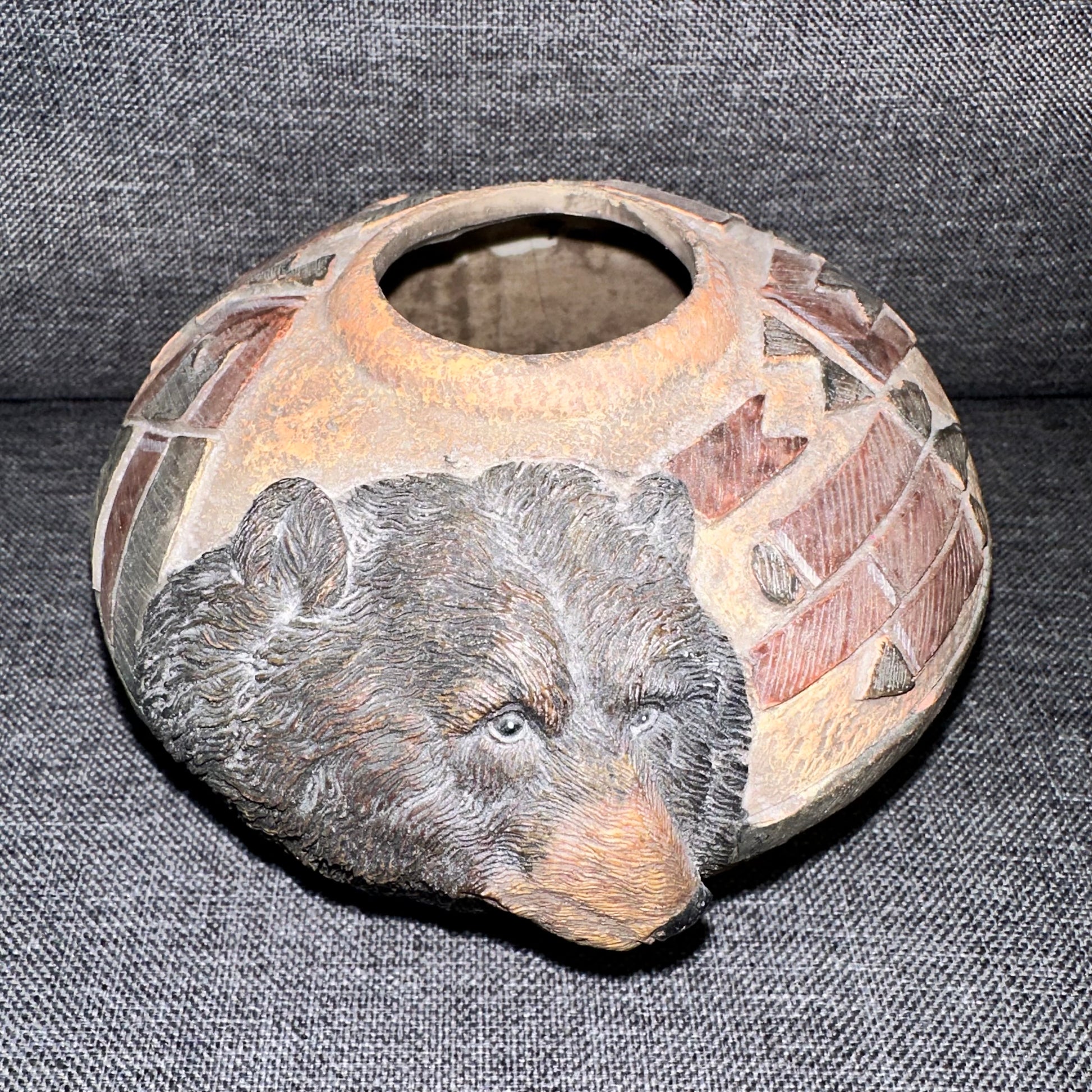 Brown Grizzly Bear Earthware Pottery Clay Ceramic Vase Planter.