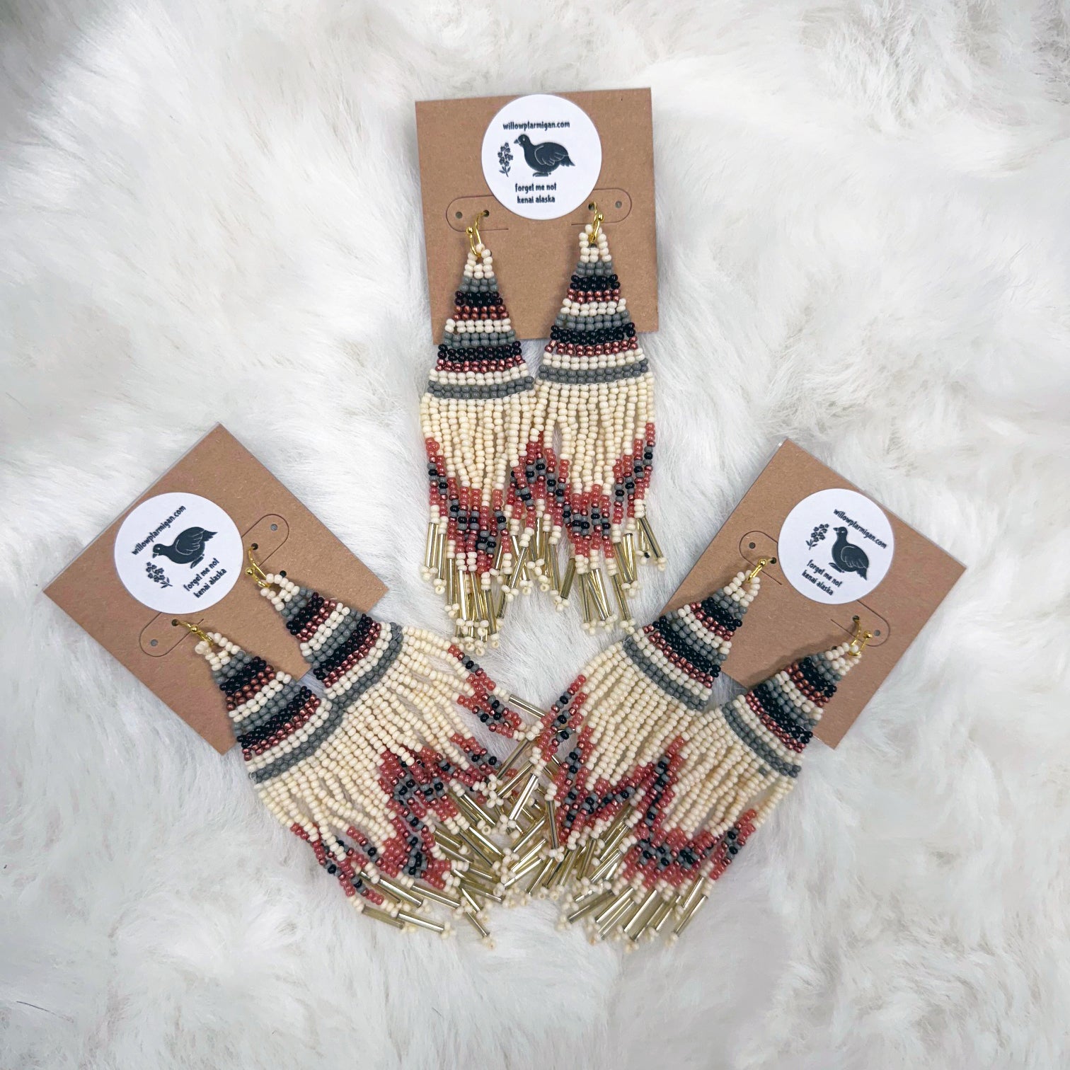 Earthy, warm, and beautifully detailed, the Cyprus earrings are a tribute to natural landscapes. Handwoven, these earrings feature a soft cream base accented by rows of terracotta, sage green, black, and warm coral beads. The geometric pattern creates a grounded, organic look that feels both traditional and modern.
