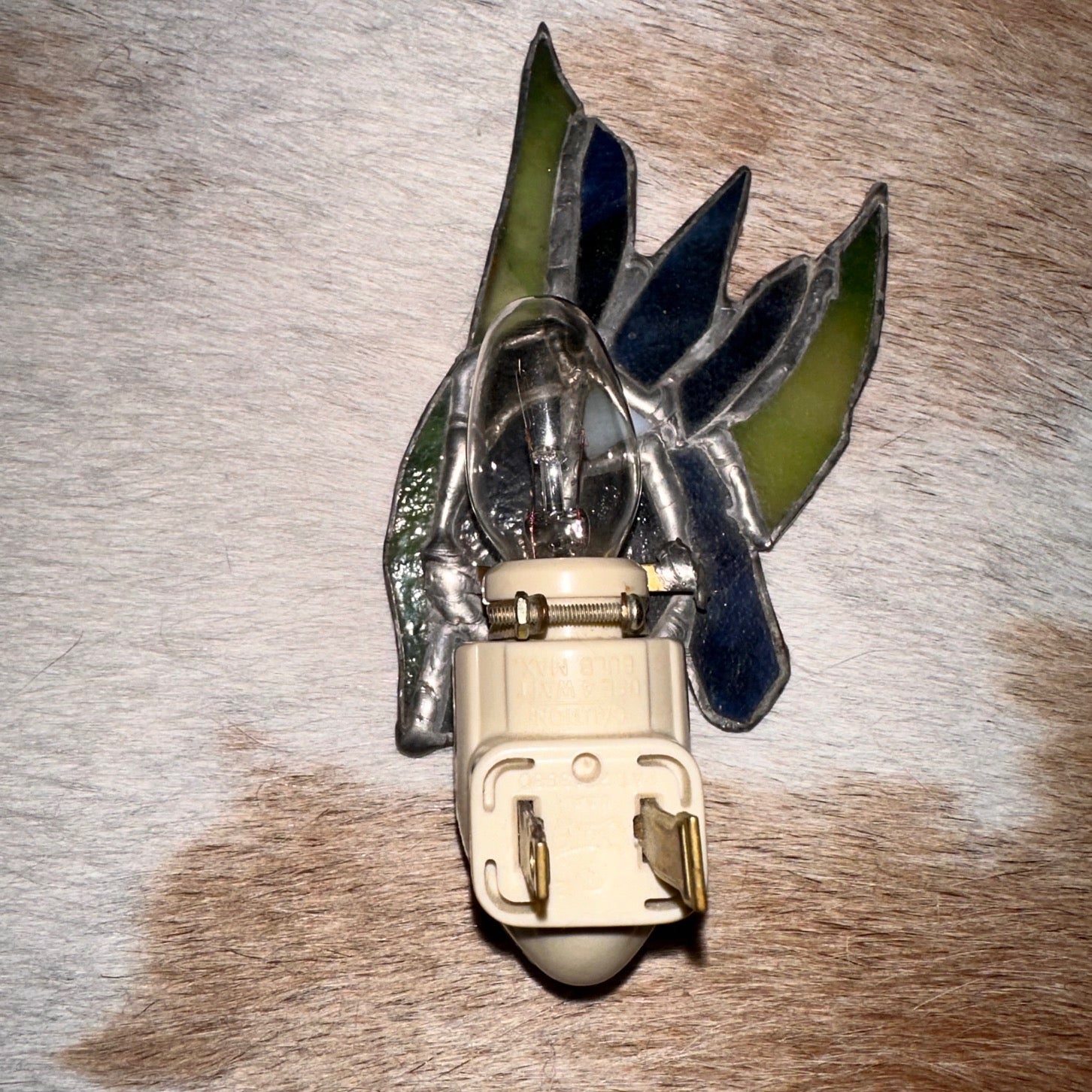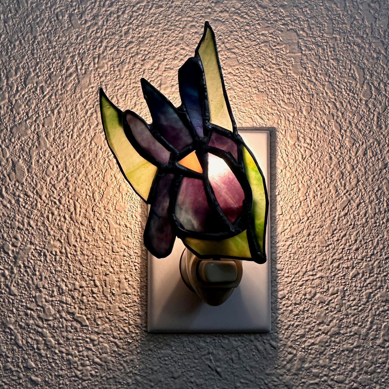 Beautiful vintage stained glass Iris flower night light . Has unique swivel hardware. Excellent condition.